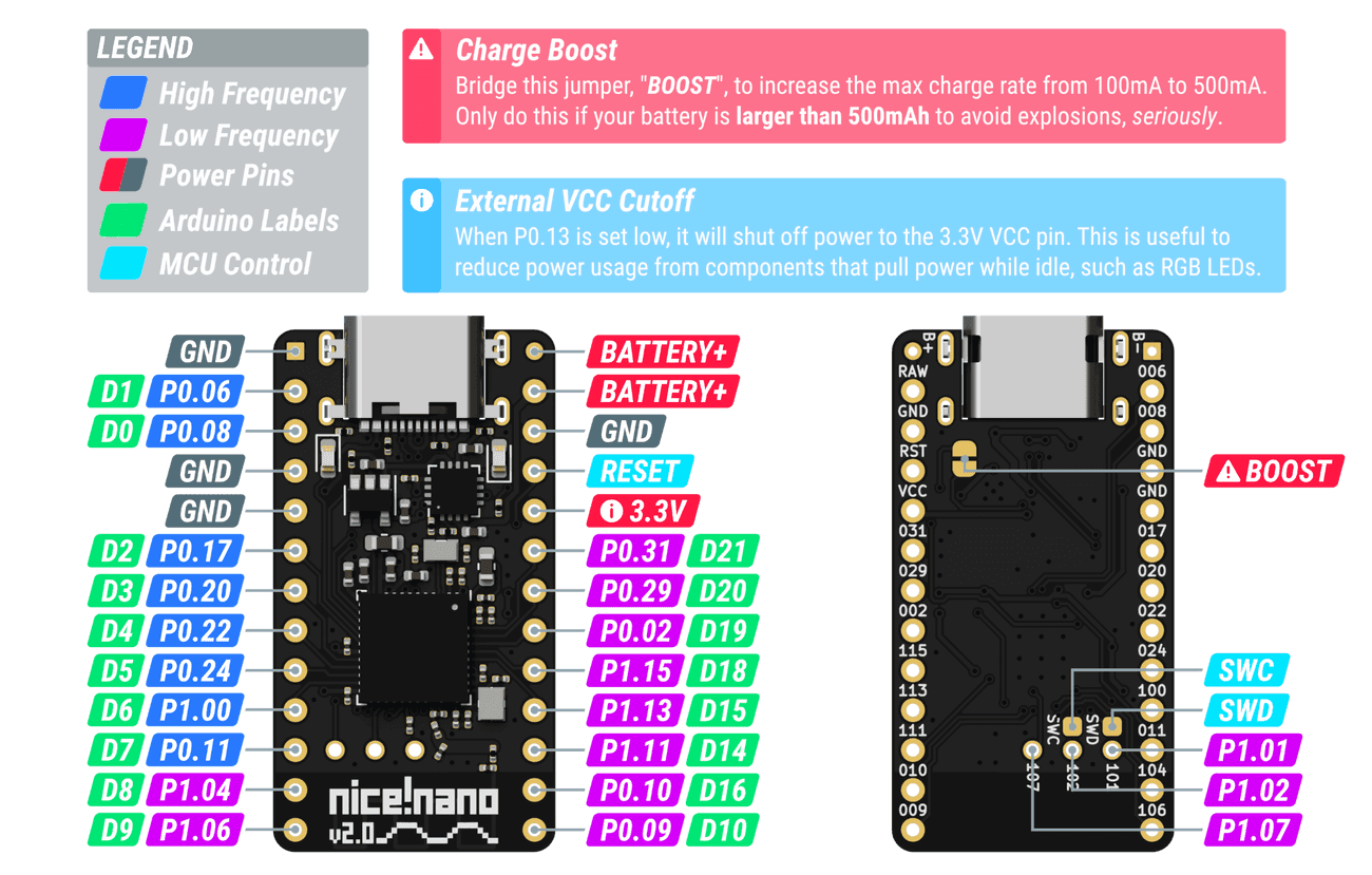 This causes the primary to drain its battery far faster than the secondary, increasing charging frequency despite the secondary having plenty of juice () remaining. The primary dies after about six weeks, while the secondary hasn't needed charging in four months. This could be mitigated by dynamically switching which microcontroller acts as primary based on remaining battery power. Unfortunately, I don't have time for that right now, so I'm using ZMK as a stopgap solution.